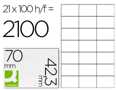 Etiqueta adhesiva q-connect kf10639 tamaño 66x33,9 mm fotocopiadora laser ink-jet caja con 100 hojas din a4.
