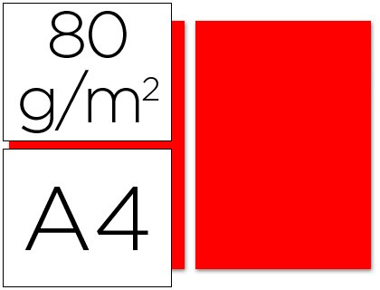 PAPEL A4 80gr ROJO LD 28250/PC58 P100 - Papel color liderpapel a4 80gr rojo paquete de 100 hojas.