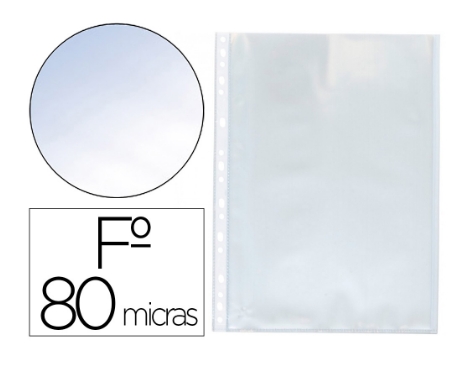 Para protección y archivo de documentos. Fabricada en polipropileno transparente no adherente. 16 taladros. Grosor: 80 micras. Tamaño folio.