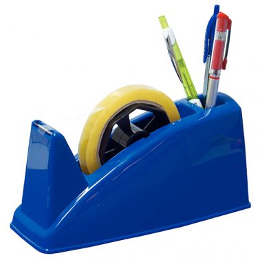 Ideal para la oficina. Cuerpo de plástico ABS con base de caucho antideslizante.Cuchillas de acero. No incluye cinta. Medidas: 115 x 50 x 56 mm. Color azul. Para cintas de 33 metros.