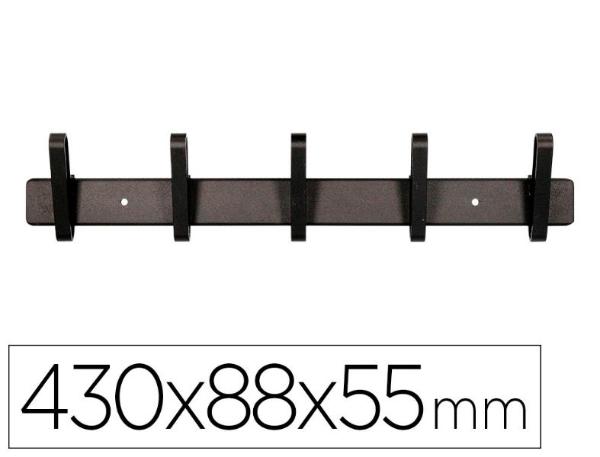 Perchero metalico 611 pared 4 colgadores color negro 55x10x5 cm.