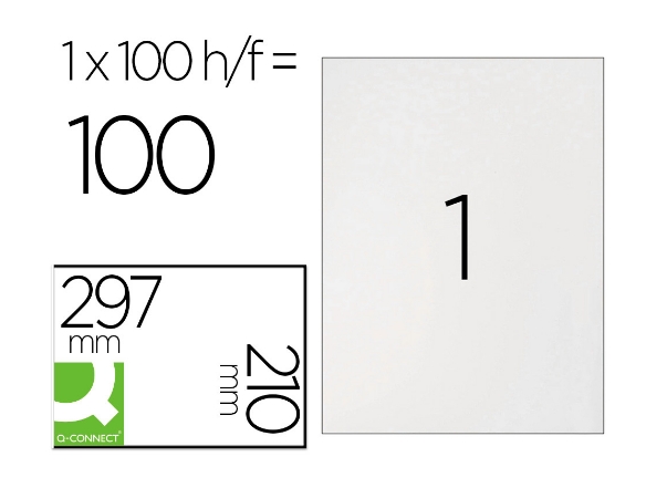 Etiqueta adhesiva q-connect kf10664 tamaño 210x297 mm fotocopiadora laser ink-jet caja con 100 hojas din a4.
