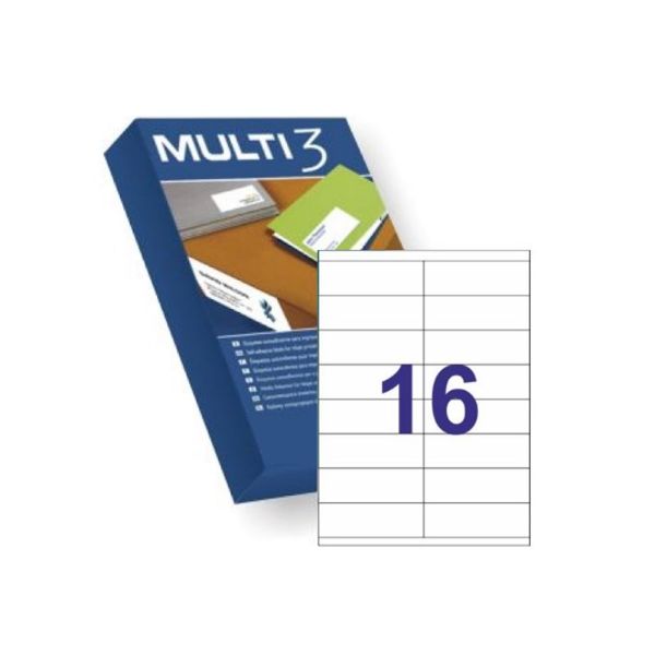 ETIQUETAS MULTIUSO 105,0 x 37,0 mm MULTI-3 4708 - Caja 100 hojas A4 con 16 etiquetas cada una - Total 1.600 etiquetas por caja