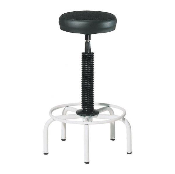 Taburetes con estructura metálica pintada con base de 5 pies. El asiento se regula mediante husillo giratorio.