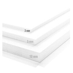 Cartón Pluma 3mm fabricado desde la unión de dos materiales, que posteriormente dan forma al material reconocido también como foam. Muy fácil de moldear y se puede cortar con casi cualquier herramienta afilada sin mucha resistencia. Dentro de los usos más destacados tenemos, el arte con la escultura de piezas, la pintura, la fotografía y la arquitectura.
