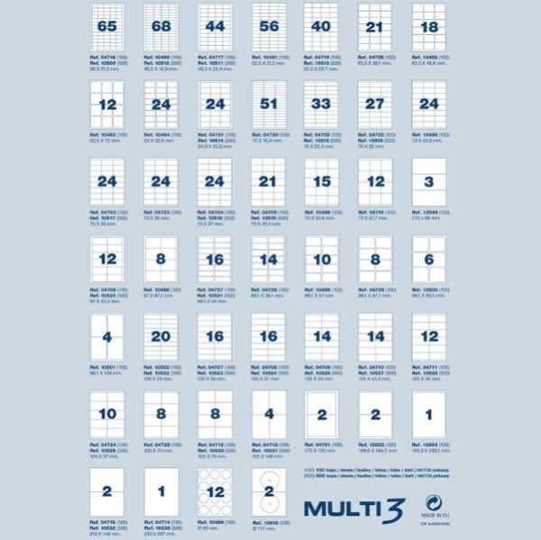 ETIQUETAS MULTIUSO 52,5 x 29,7 mm MULTI-3 10513 - Caja 500 hojas con 40 etiquetas cada una - Total 20.000 etiquetas por caja