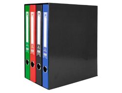 Fabricado en cartón entrecolado de 1,90 mm de espesor forrado con papel deencuadernación plastificado y gofrado con tela de pvc. 2 anillas mixtas d e 25 mm con compresor de plástico, cantoneras largas, ollao y tarjetero enel lomo. Tamaño folio. Medidas exteriores del módulo: 184 mm ancho x 350 mm alto x 290 mm fondo. Ancho de lomo: 40 mm. Colores surtidos, la forma más cómoda de tener la documentación de varios asuntos perfectamente clasificada y separada por color.