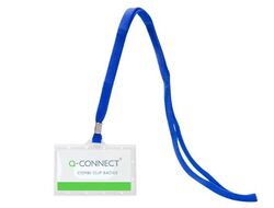Identificador q-connect kf17112 con cordon plano azul y apertura lateral 94x60 mm.