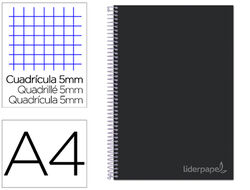 Cuaderno espiral liderpapel a4 micro jolly tapa forrada 140h 75 gr cuadro 5mm 5 bandas 4 taladros color negro.
