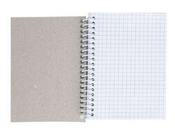 Tapa de cartoncillo de 400 g/m² impresa y plastificada en polietileno brillo. Contratapa de cartoncillo de 400 g/m². 80 hojas. Papel de 60 g/m². Espiral nylonizada blanca. Sin margen. Cuadrícula de 4 mm. Colores surtidos.
