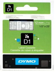 CINTA DYMO ESTANDAR D1 12mm x 7m BLANCO SOBRE FONDO TRANSPARENTE S0720600